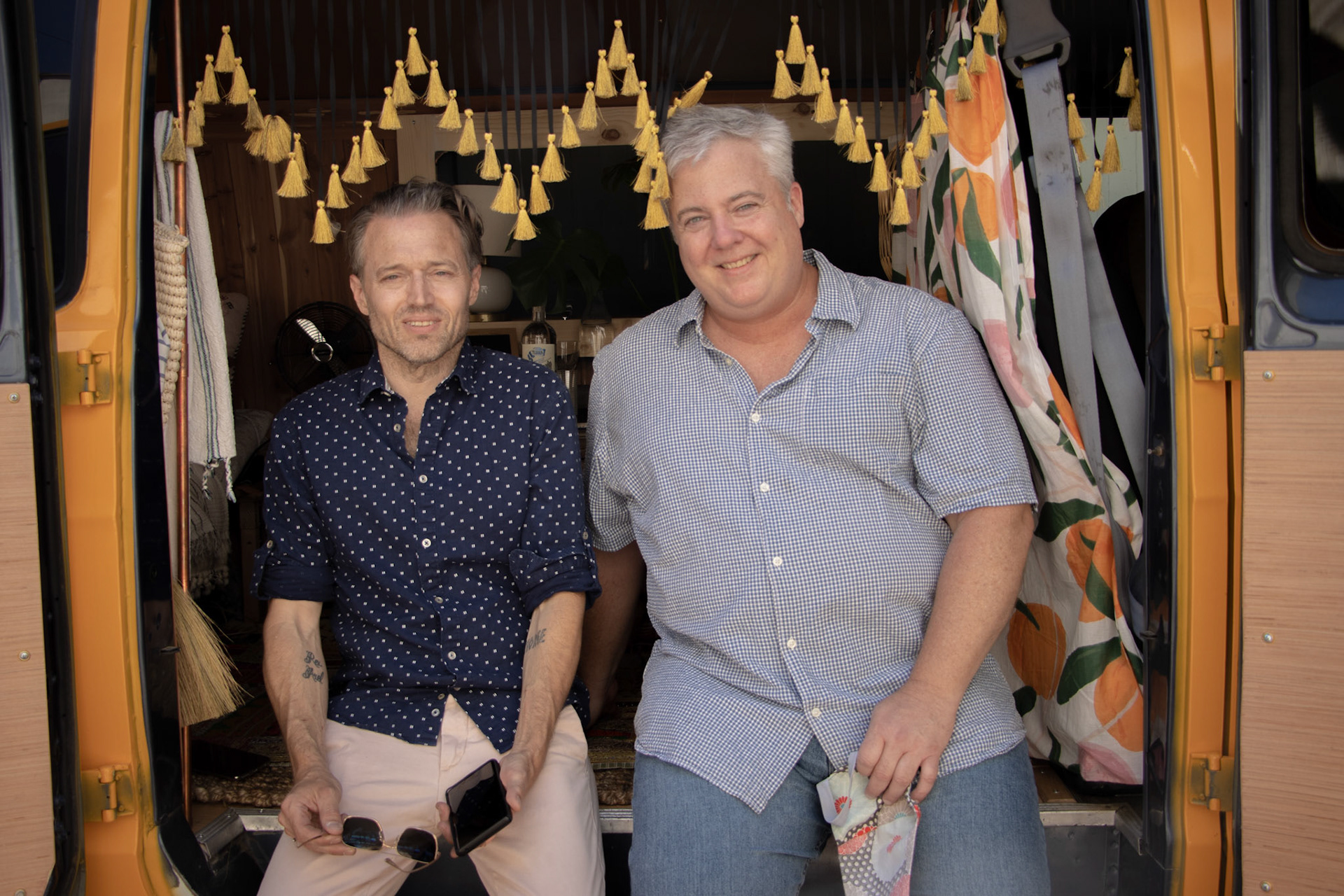 Jade & Paal aren't your traditional couple by any means, but it's what made this event so special. After moving the date around several times due to Covid, they finally decided enough was enough and their marriage was due for a celebration. They recently bought a classic mustard-yellow van and renovated the entire inside with new floors, cedar walls, and cute decor! This became the focal point of their wedding celebration in their back driveway. They got clever, layering carpets and textiles down for guests to sit. The event had wonderful homemade dips and wraps, live music, and of course a bar at the back of a van. It was a magical way to celebrate a wedding and kick off summer 2020.